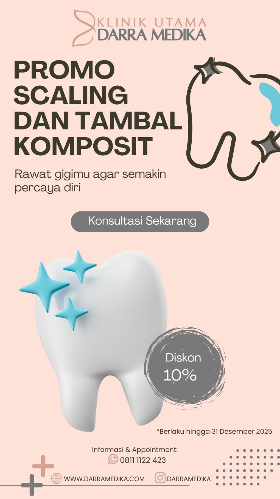 Menawarkan perawatan gigi dan mulut lengkap bagi seluruh anggota keluarga — mulai dari pemeriksaan rutin, pembersihan karang gigi, tambal, hingga layanan spesialis seperti ortodonsia (behel).