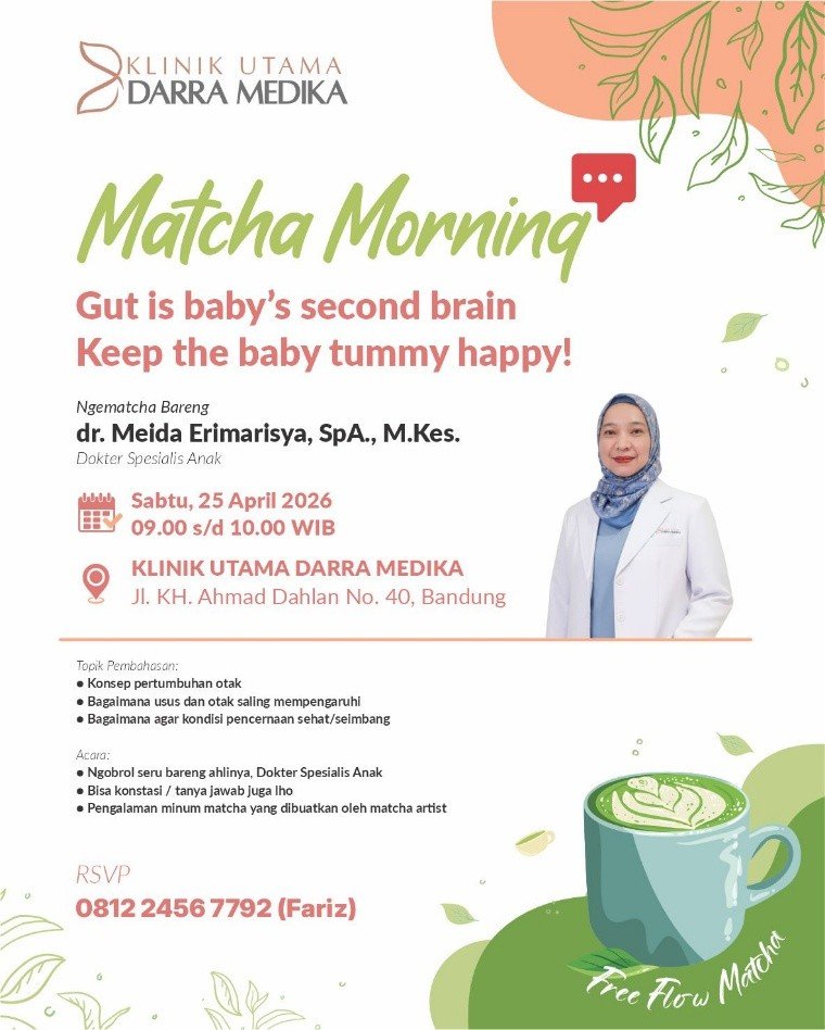 BANDUNG, 25 April 2026 – Dalam upaya meningkatkan kesadaran orang tua terhadap tumbuh kembang buah hati, Klinik Utama Darra Medika menyelenggarakan acara edukatif bertajuk “Matcha Morning” pada hari Sabtu (25/4). Bertempat di Klinik Utama Darra Medika, Jl. KH. Ahmad Dahlan No. 40, Bandung, acara ini mengupas tuntas keterkaitan erat antara kesehatan pencernaan dengan kecerdasan otak anak.