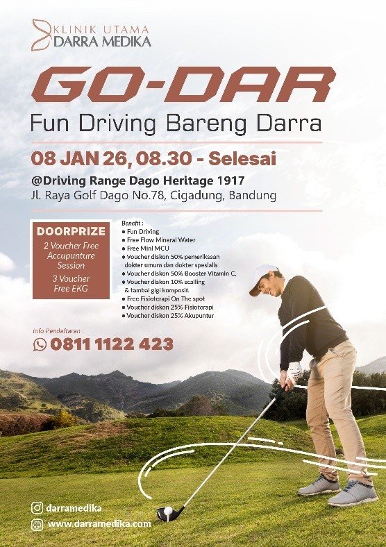 BANDUNG, 8 Januari 2026 – Apa jadinya kalau hobi golf bertemu dengan layanan kesehatan prima? Jawabannya ada di acara GO-DAR (Fun Driving Bareng Darra) yang baru saja berlangsung sukses di Driving Range Dago Heritage 1917, Bandung. Bukan cuma soal memukul bola sejauh mungkin, Klinik Utama Darra Medika berhasil menyulap pagi hari di kawasan Dago menjadi momen penuh tawa, keringat sehat, dan segudang kejutan menarik.